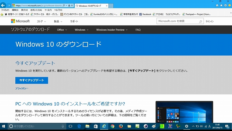 Windows10 Creators Update(1703)バージョンは現時点では、まだ「自然に降ってくる」状態ではなく、インストールするには、自分でアクションを起こす必要があります。