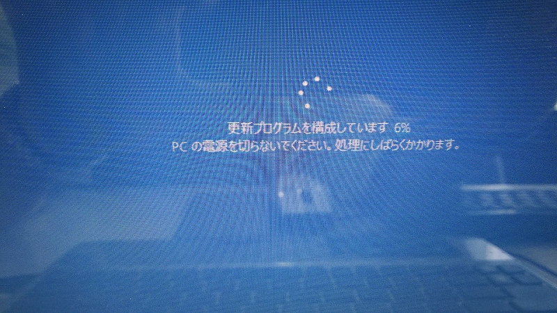 ・再起動~更新準備~更新プログラムの構成~ログイン画面の表示 に1時間5分