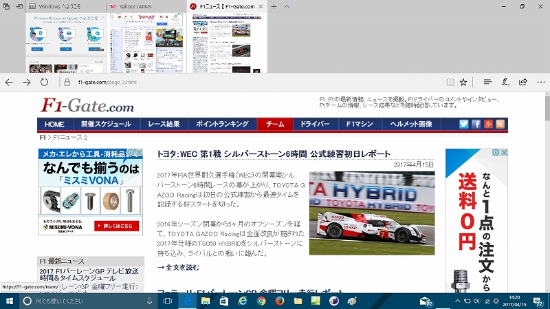 ブラウザEdgeの新機能。すべてのタブのサムネイルを全部表示できます。