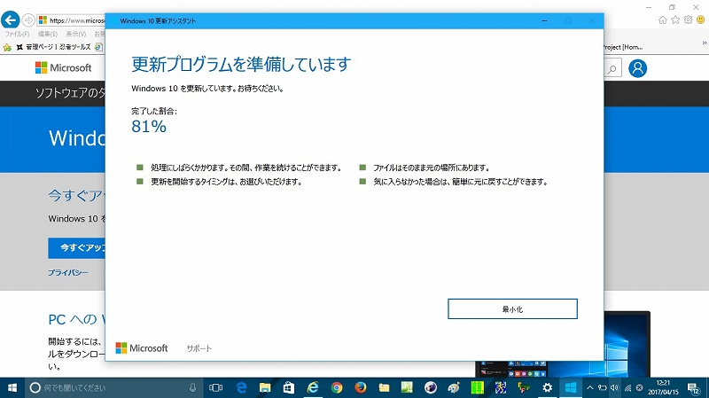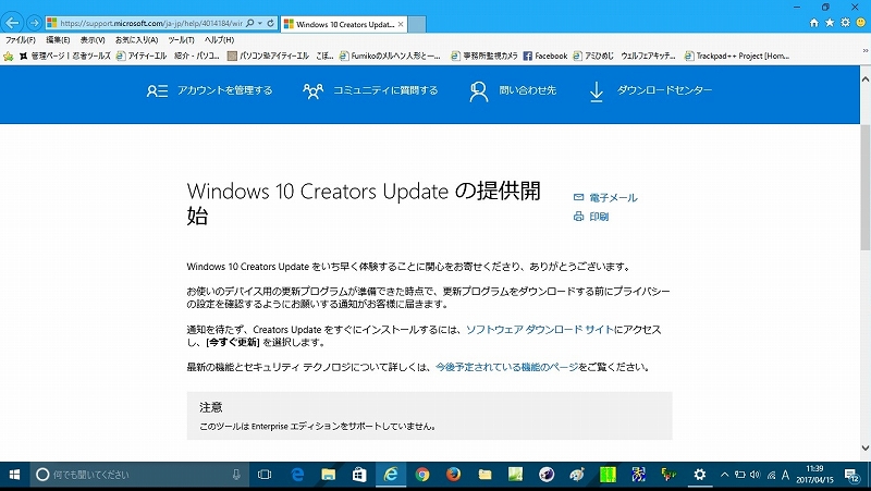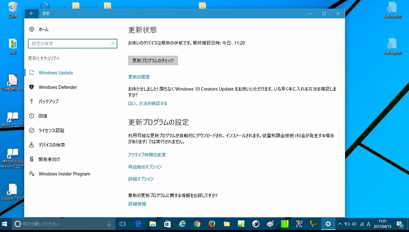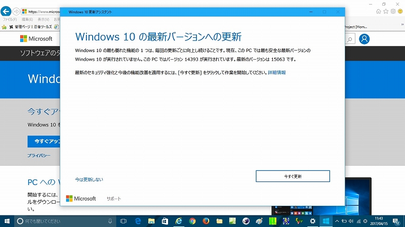 Windows10 Creators Update(1703)バージョンは現時点では、まだ「自然に降ってくる」状態ではなく、インストールするには、自分でアクションを起こす必要があります。