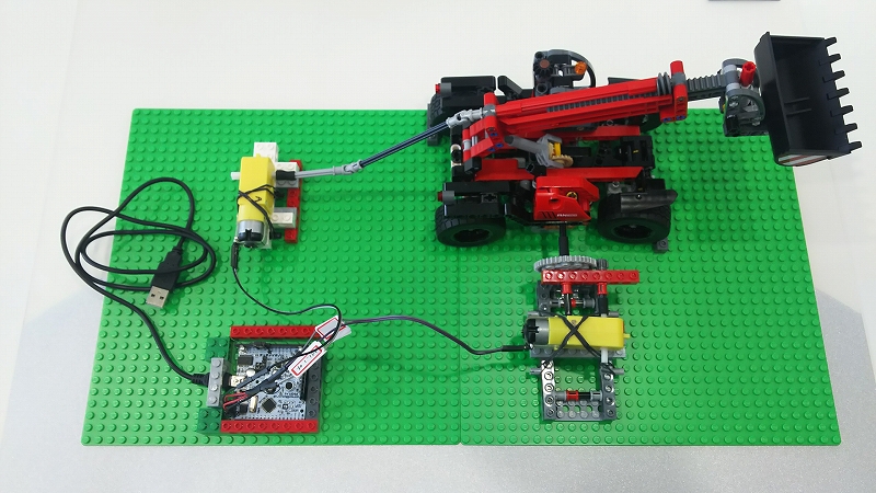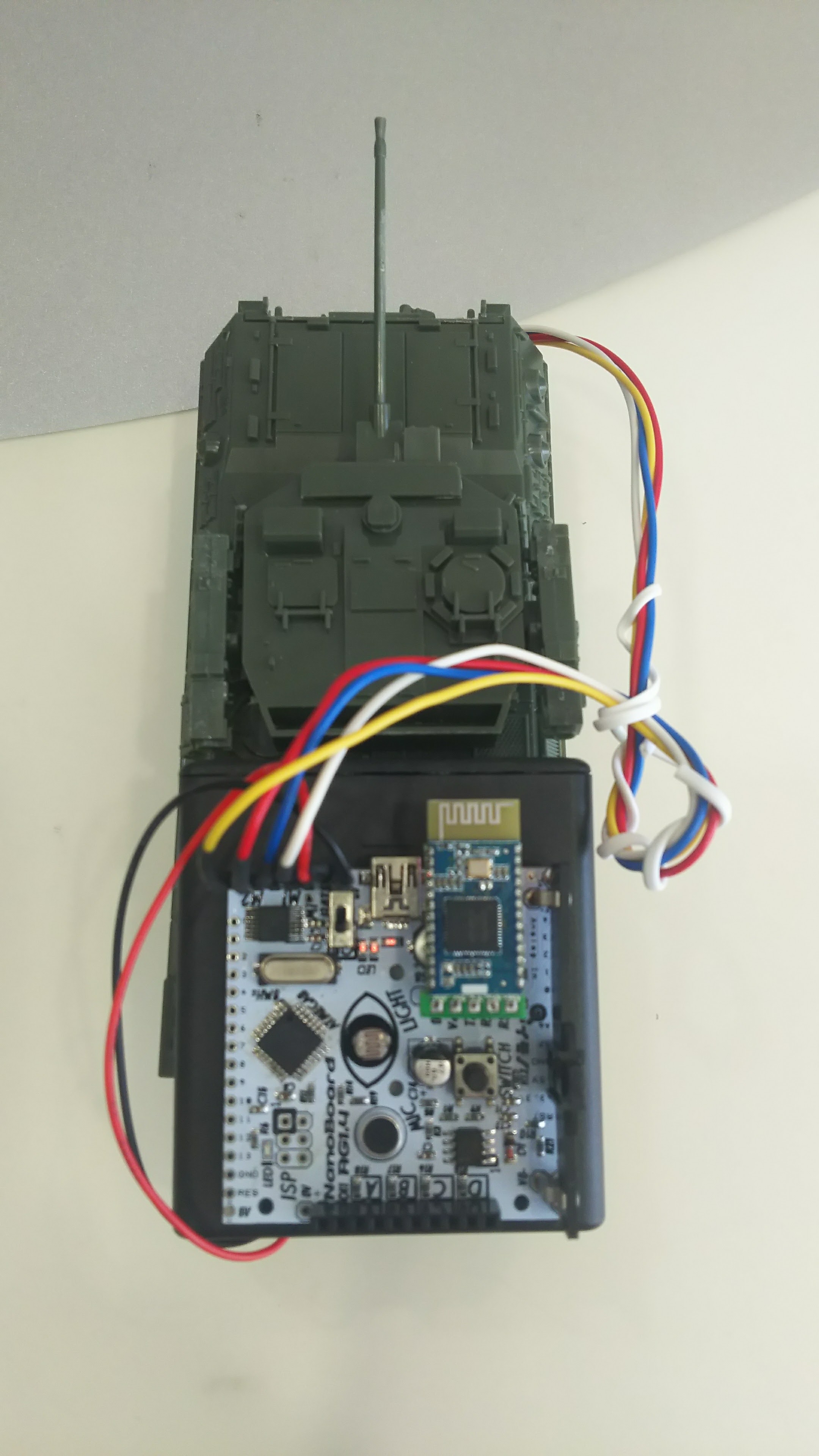 本来、有線のリモコンで操作するモデル。これをパソコンから無線(Bluetooth)で操作する基盤で、いわゆるラジコン化しました。